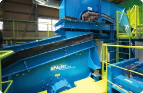 Mixed waste can be sorted by specific gravity (3 types) ・Light and heavy items: plastic, paper, fibers, etc. ・Heavy items: rubble, wood, metal, etc. ・Fine particles: earth and sand, etc.