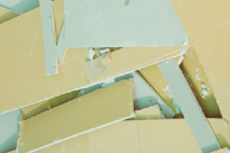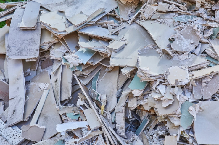 Plasterboards are inspected and accepted in a dedicated work building. The mixture is removed, separated by manufacturer, and used as recycled raw materials.
