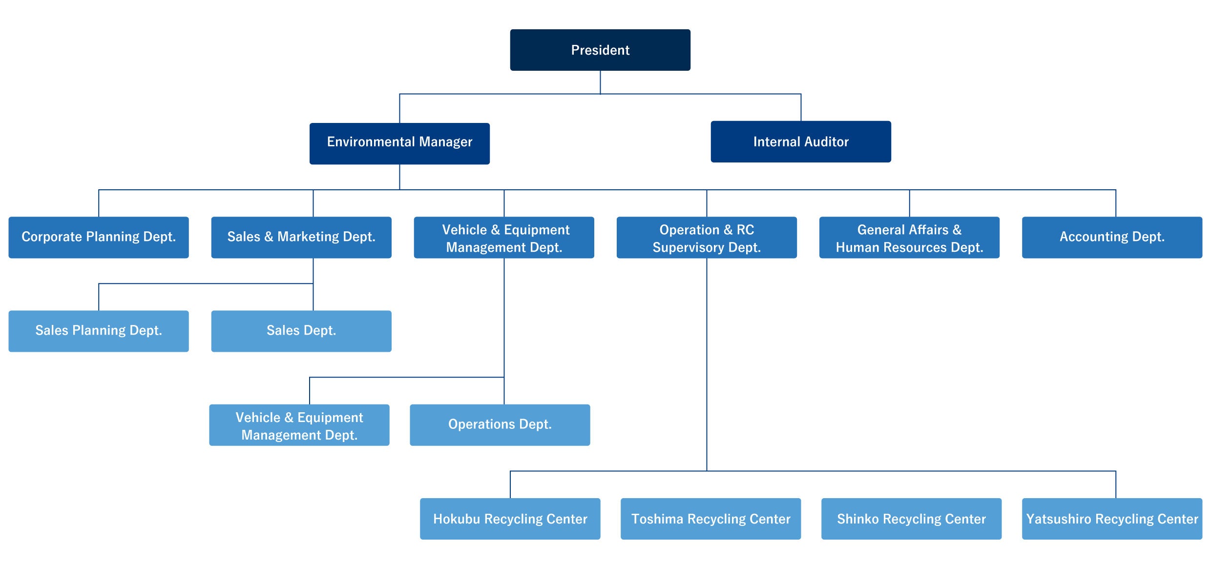 - 2. We will always be aware of the impact that business activities related to the waste treatment industry have on the environment, and strive to continuously improve our environmental management system in order to prevent environmental pollution, protect the environment, and improve environmental performance.